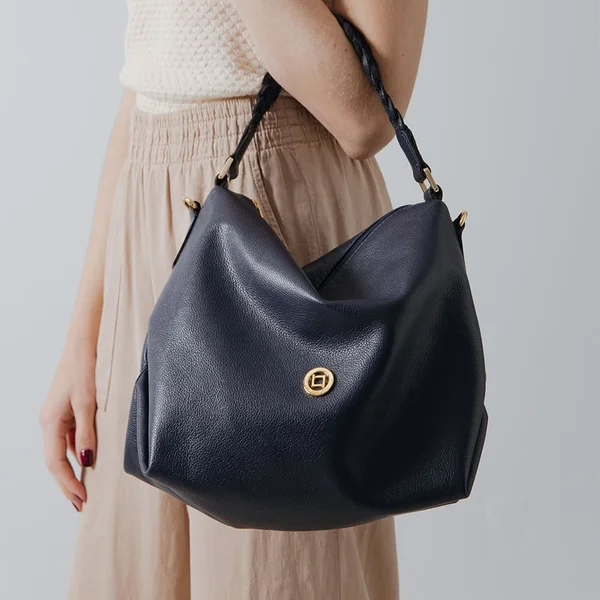 Bolsa casual maleável média. Possui alça curta trançada para usar no ombro. Leve e com amplo espaço interno.