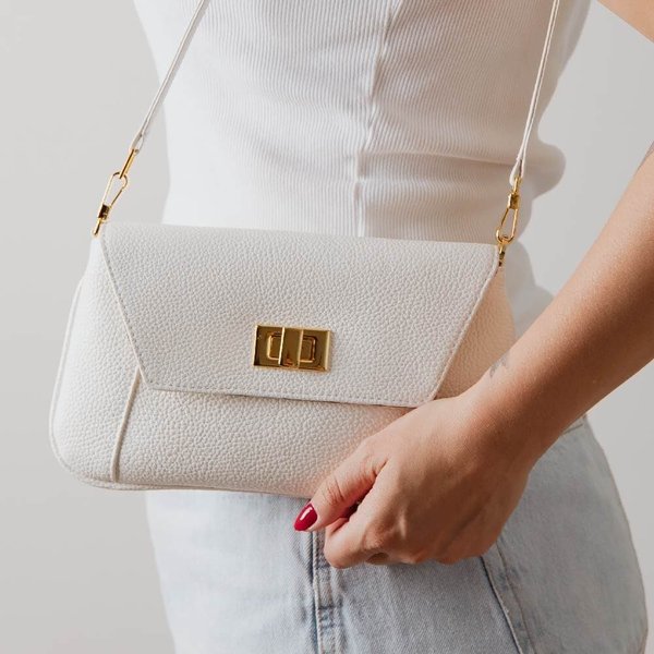 Alças inteligentes permitem múltiplas formas de uso: como clutch envelope, bolsa de mão para usar no antebraço, bolsa baguete no ombro, bolsa à tiracolo e como bolsa transversal.